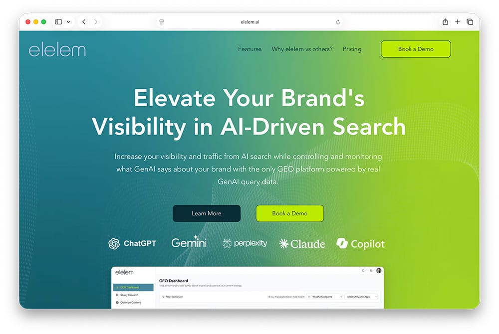 Elelem is a startup that has entered the fray by promising to “elevate your brand's visibility in AI-driven search.”
