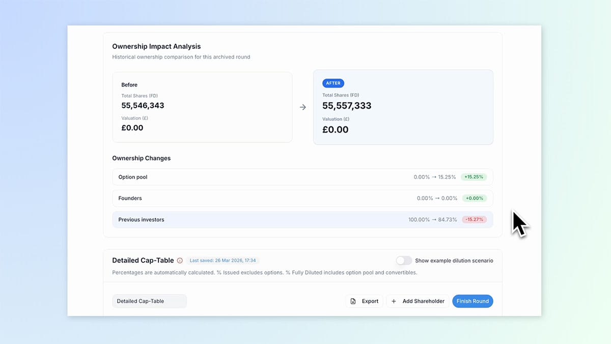 “That's 160 pages of investment documents that we can do in under two minutes. And we can manage the entire signing process, which is something founders usually have to pay £5,000 pounds for unnecessarily. We do that automatically. One click of a button and it fully populates it for the law firm,” Wing says.